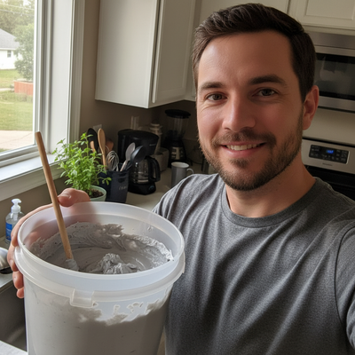 Open the kit and lay out the bucket, powders, tools, and instructions.